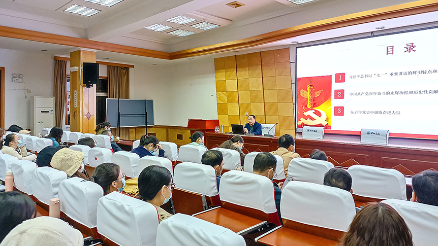 会上,文大山博士首先介绍了习近平总书记“七一”重要讲话的鲜明特点和历史地位,其主题是实现中华民族伟大复兴,一篇仅有7000余字的七一讲话,字数虽少,却值得我们每位党员认真学习领会;接着讲解了中国共产党百年奋斗的光辉历程和历史性贡献,百年奋斗征程,百年为民之路,中国共产党历经四个阶段迎来百年光辉历程,这一路走来成就了许多党史著作,为搞好党史学习教育,我们必须要认真研读党史的基本著作;文大山博士最后强调中国共产党的领导是中国特色社会主义最本质的特征,是中国特色社会主义制度最大的优势,中国共产党的百年奋斗史还有许多历史经验值得我们汲取总结。