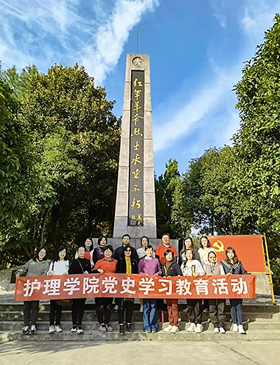 为进一步推进党史学习教育走深走实,11月14日,护理学院党总支全体教工党员赴洞口李家渡红军烈士墓开展党史学习教育,瞻仰红色基地、追溯红色足迹、接受红色教育。