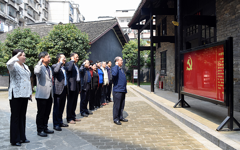 为进一步贯彻落实中央决策部署和省委有关要求,全方位提升党史学习教育的广度和深度,3月29日,校党政班子全体成员走进邵阳红色爱国主义教育基地——八路军驻湘通讯处旧址,以实地研学的形式开展党史学习教育“学史明理”专题学习。党委书记彭希林,党委副书记、校长葛金文及党委班子全体成员佩戴党徽,面向党旗,举起右拳,重温入党誓词,坚定共产党人的初心与使命。