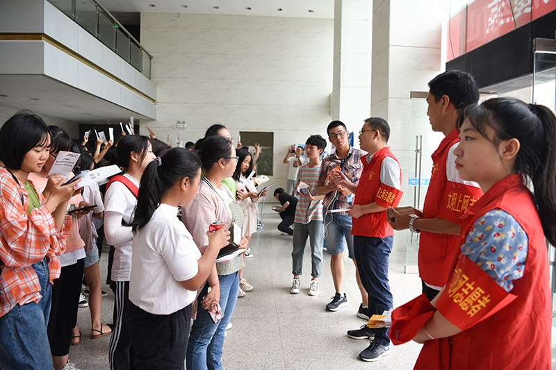 随后一行人检查了设在留香食堂和明德楼的网络安全进校园宣传点,此次设点共接待学生约 3000人次,发放宣传资料800余份。姚鹏飞主任对beat365官网的网络安全工作给予了充分肯定,她指出beat365体育官方网站作为应用型本科学院,在网络安全方面有较强的技术力量储备,市网信办要和beat365体育官方网站等单位在网络安全相关方面开展深入合作,认真落实习近平总书记关于网络安全的系列指示精神,努力搞好我市的网络安全工作。