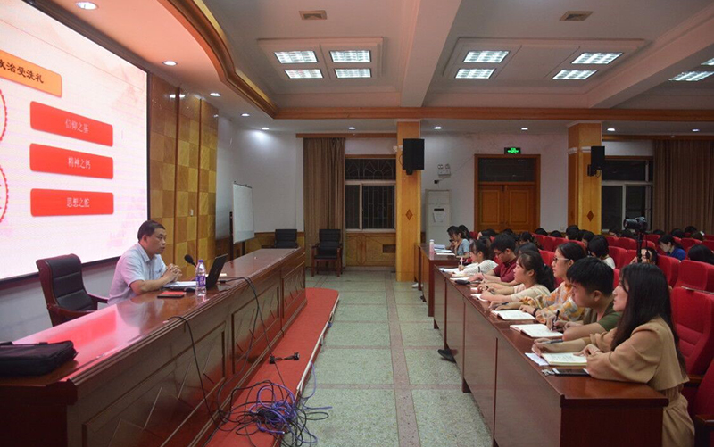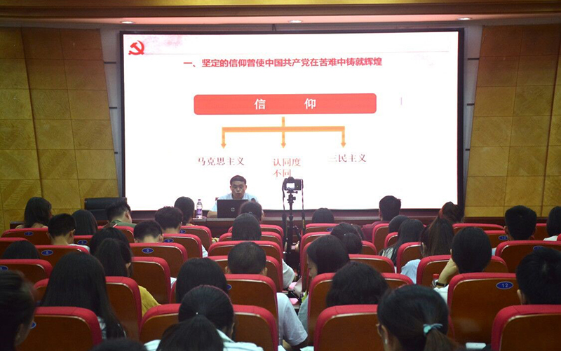 为庆祝新中国成立70周年,持续推进“不忘初心、牢记使命”主题教育工作,10月10日19时,文学院携食品与化学工程学院于李子园校区办公楼二楼报告厅共同开展庆祝新中国成立70周年主题宣讲党日活动,此次宣讲特邀请到beat365官网宣讲团文大山博士(副教授)主讲,报告的题目为《中国共产党为什么能》,文学院学生一支部书记谭亚军老师及文学院和食品与化学工程学院全体学生党员、入党积极分子参加并认真聆听了报告。