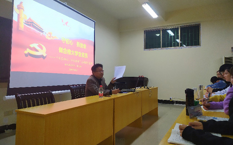 新思想领航新时代,新目标开启新征程。为深入开展“不忘初心、牢记使命”主题教育,传承红色基因代代相传,10月28日晚七时,城乡建设学院党总支书记张友柏于求真楼5409会议室为全体学生党员、发展对象讲“守初心、担使命,做合格的大学生党员”主题教育党课。