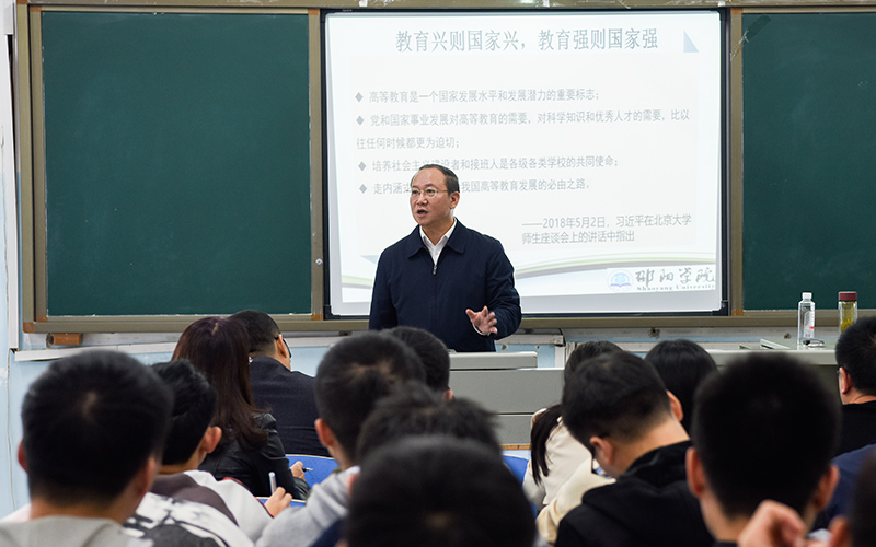 10月31日下午,党委副书记、校长彭希林教授在求真楼研究生教室为机械与能源工程学院讲授题为“新时代高等教育改革发展趋势”的党课。机械与能源工程学院教工党员、学生党员聆听党课。