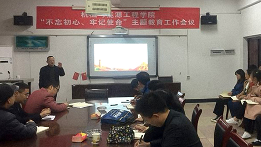 11月21日下午,机械与能源工程学院党总支在求真楼5312会议室举办“不忘初心、牢记使命”主题教育专题党课。此次党课由党总支组织委员、院长陈志刚主讲,全院教工党员、学生党员听取了党课。