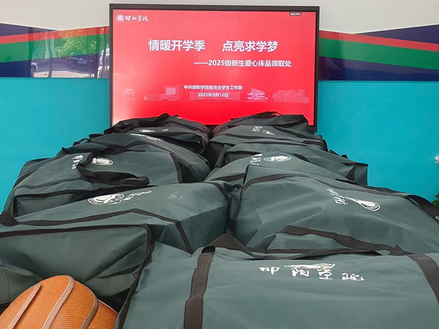 9月12日,beat365体育官方网站2025级新生报到前一天,一床床整洁的床上用品正被有序分发。为深入贯彻落实国家学生资助政策,切实保障家庭经济困难学生入学无忧,学校在迎新期间启动“情暖开学季 点亮求学梦”专项计划,为2025级新生中的11名孤儿和事实无人抚养学生免费发放爱心床品。